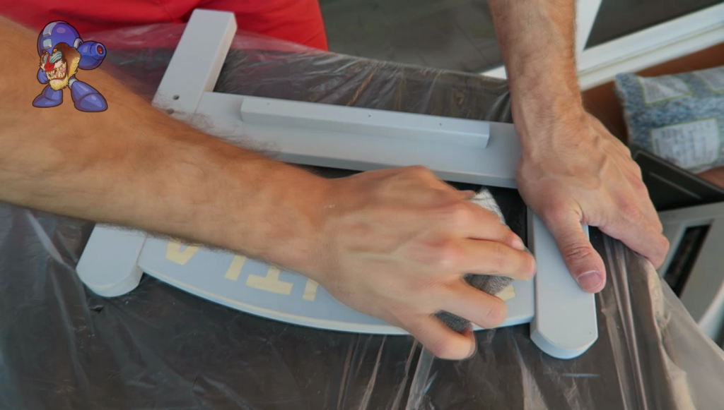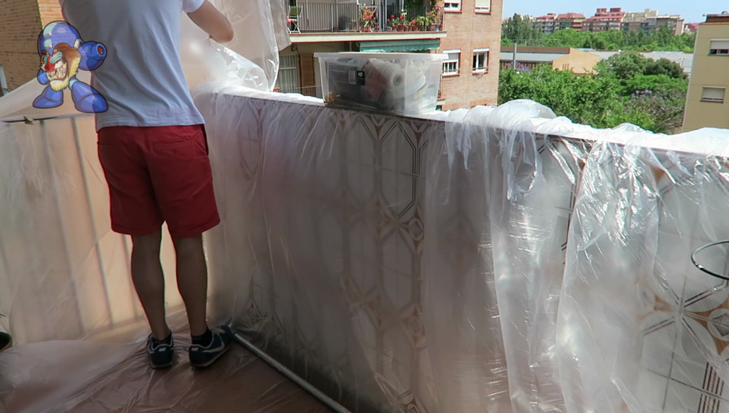 1. (1) Proteger: Ya sea con cartones, papel de periódico o un plástico como en mi caso, es MUY RECOMENDABLE proteger la zona de trabajo de manchas debido al lijado o a la pintura.