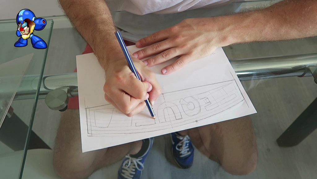 3. (3) Diseñar el Nombre para el Cabezal: Hay mil maneras de pintar el nombre de vuestra mascota en el cabezal. En mi caso, me he decidido por escribir su nombre en un papel adhesivo para después poder recortar las letras y pegarlas en el cabezal. De esta manera cuando pintemos dejaremos las siluetas de las letras sin pintar sea