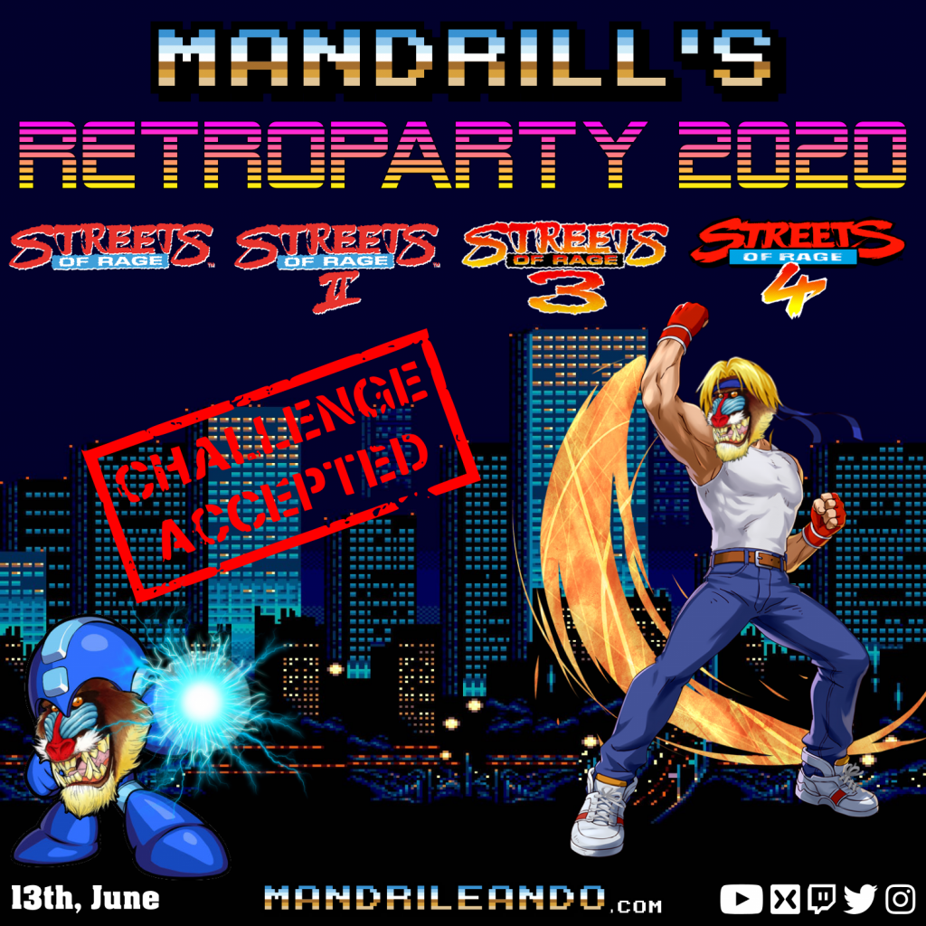 En 2017, lo dedicamos especialmente a SEGA Megadrive con Comix Zone como estrella principal. En 2018, se realizó un salto a los 32bits para proponer un reto sobre Sony Playstation el espectacular Symphony of the Night. Y el año pasado, pasó el turno a Super Nintendo donde la estrella principal fue Super Castlevania IV. Y por lo que véis, este año volvemos a Megadrive (Xbox) para pasarnos la saga de Streets Of Rage.
