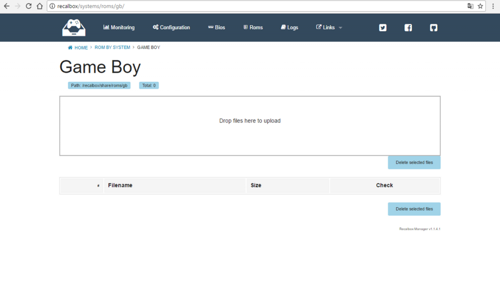 Si por ejemplo le damos a uno como Gameboy, nos aparecer谩 un cuadro donde podremos directamente arrastrar nuestras roms de manera sencilla.