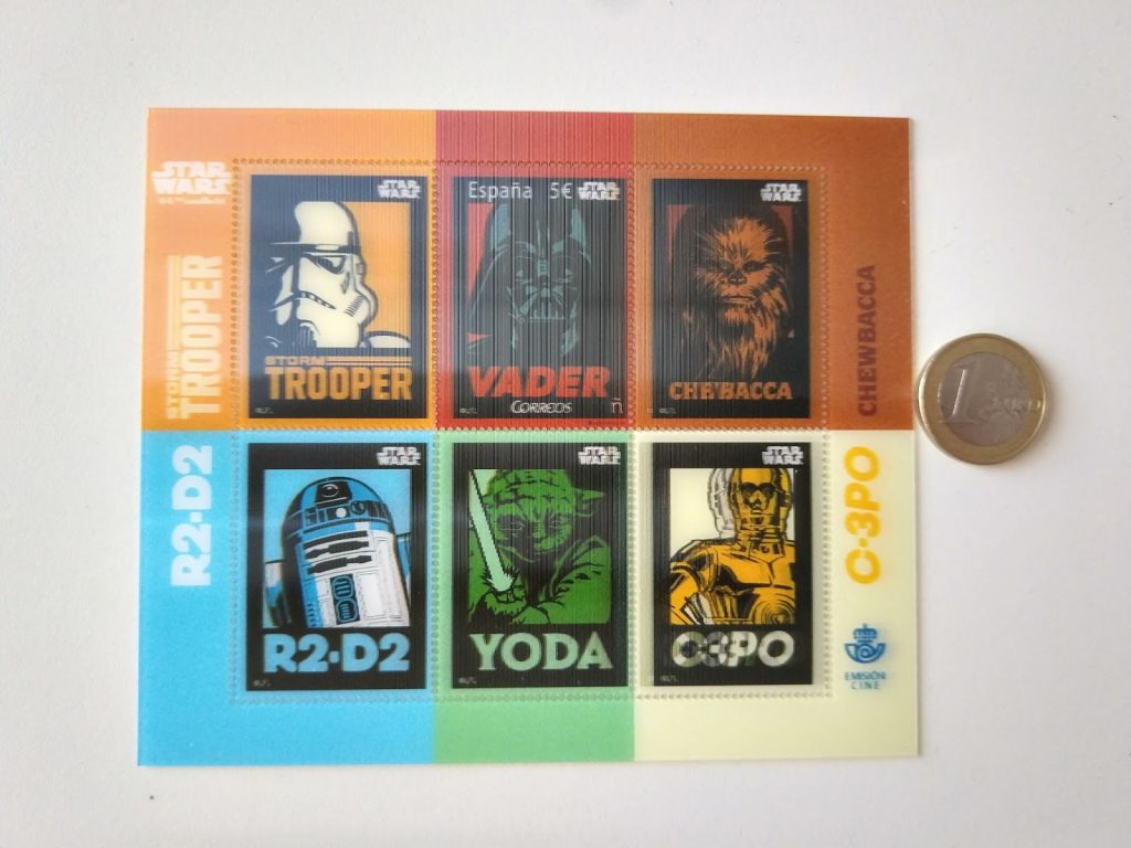 La hoja bloque que emite Correos para homenajear estas películas que tienen un carácter universal, presenta la particularidad de estar impresa con tecnología lenticular sin movimiento, lo que proporciona una mayor profundidad de la imagen. Es decir, cada viñeta parece un holograma…