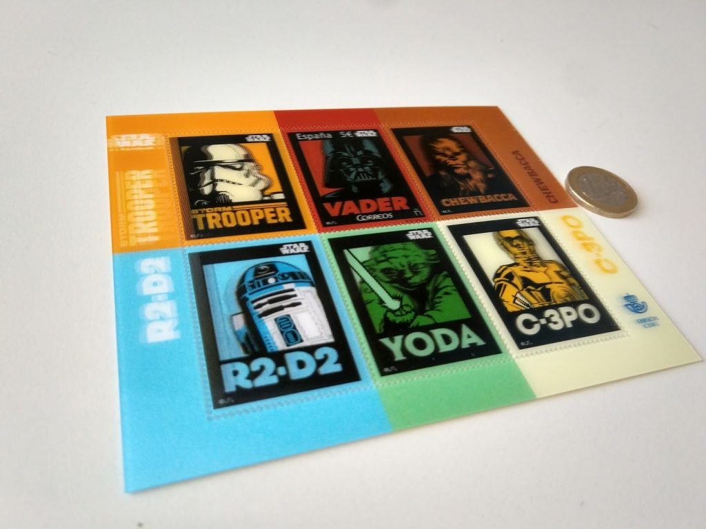Como ya os comenté en el pasado post sobre el ESPECTACULAR sello dedicado al 30 aniversario del mítico juego de la EDAD DE ORO del videojuego español La Abadía del Crimen. Aquí os traigo (con un poquito de demora…) los sellos dedicados al 40 aniversario de la saga de STARWARS.